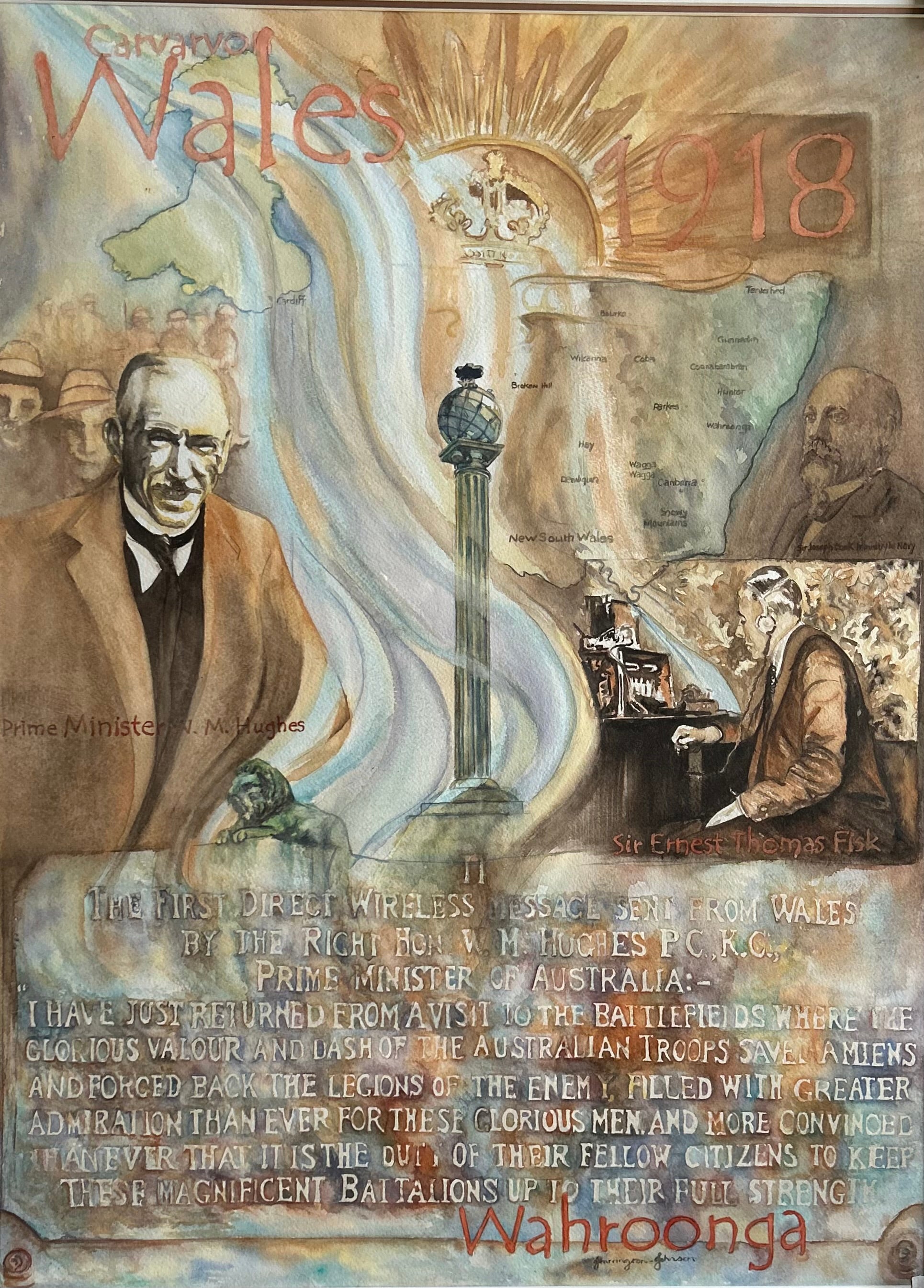 In 1918 the first wireless message was send from Prime Minister William Morris Hughes to a house in Wahroonga. The message was received by Sir Ernest Fisk. It included a message about the Australian Troops fighting in France The memorial stands at the house 'Luciana' on the corner of Stuart and Cleveland Street, Wahroonga, in Sydney.
